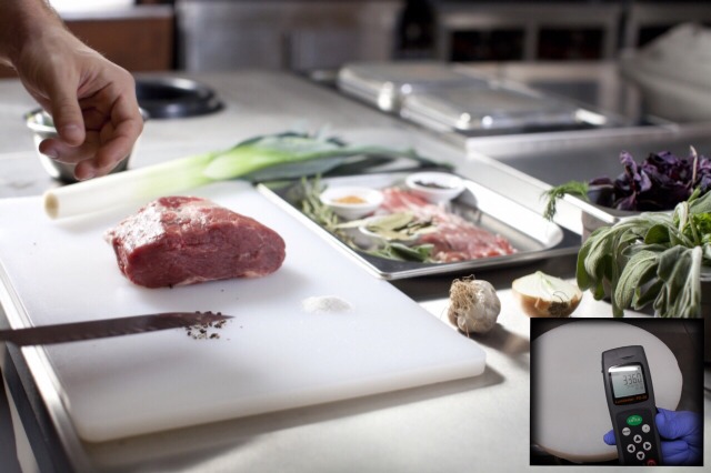包丁やまな板などの設備・器具・作業者の手指などに付着した微生物をチェックします。外部専門機関によって科学的に検査する事ができます。 |